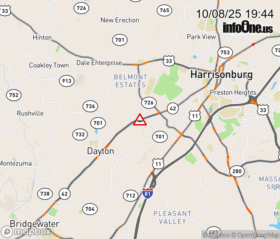 On VA-42 South in the County of Rockingham, in the vicinity of Garbers Church Rd; Rt. 910N/S (Rockingham County), motorists can expect delays due to a multi-vehicle crash. Updated: Wed 10/8/25 7:44 PM EDT ![]() Updated: Wed 10/8/25 7:44 PM EDT |