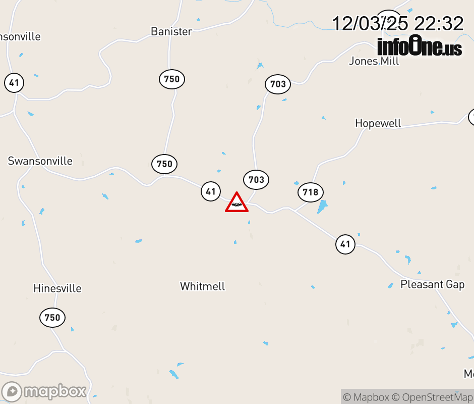 On VA-41 North in the County of Pittsylvania, in the vicinity of F C Beverly Rd; Rt. 703N/S (Pittsylvania County); /F. C. BEVERLY ROAD, motorists can expect delays due to a vehicle crash. Lane closures exist. ![]() |