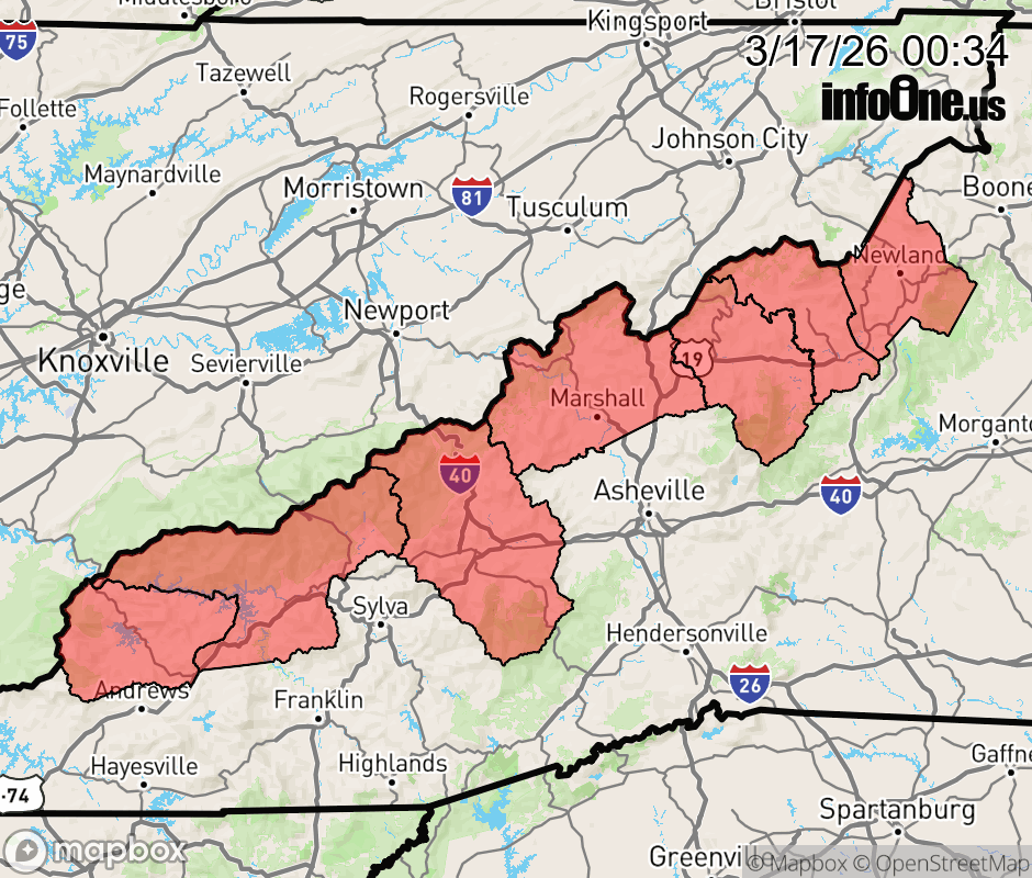 Canceled 3/17/26 7:51 AM Winter Weather Advisory issued March 17 at 12:32AM EDT until March 17 at 8:00AM EDT by NWS Greenville-Spartanburg SC * WHAT... Snow above 3500 feet. Additional snow accumulations up to 1-2 inches, with locally higher amounts possible above 5,000 feet. Additional snow accumulations of a dusting to possibly half an inch in some lower elevations. Winds gusting as high as 50 mph. * WHERE... The North Carolina mountain counties along the Tennessee border above 3500 feet. * WHEN... Until 8 AM EDT this morning. * IMPACTS... The snowfall will create slippery and snow covered roadways. The hazardous conditions could impact the Tuesday morning commute. Strong winds could cause damage to trees and power lines. ![]() |