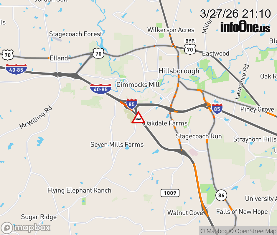 The right lane is closed before Exit 261 (Old NC 86). ![]() |