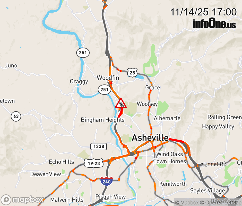 The left lane is closed near Exit 25, NC 251 (Riverside Drive). ![]() |