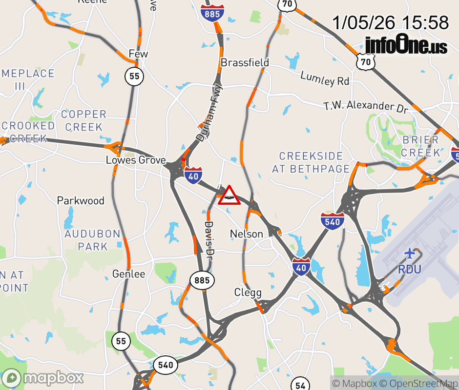 The left shoulder is closed near after Exit 280 (Davis Dr). ![]() |