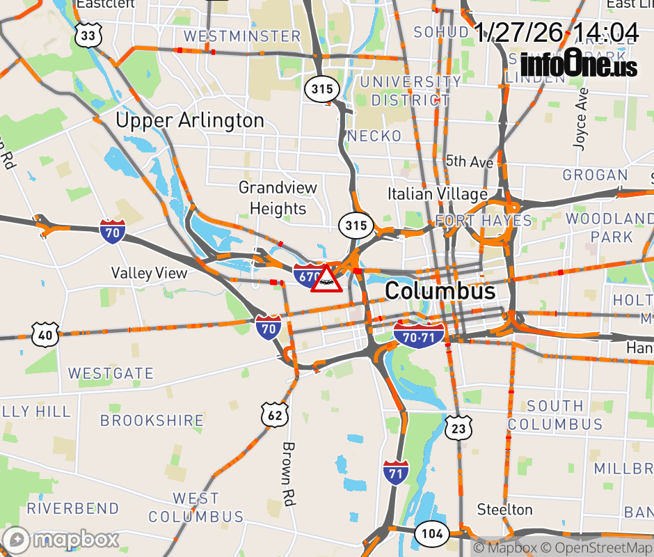 The right shoulder is blocked on I-670 East at US-33/SR-315 South, due to a crash. ![]() |