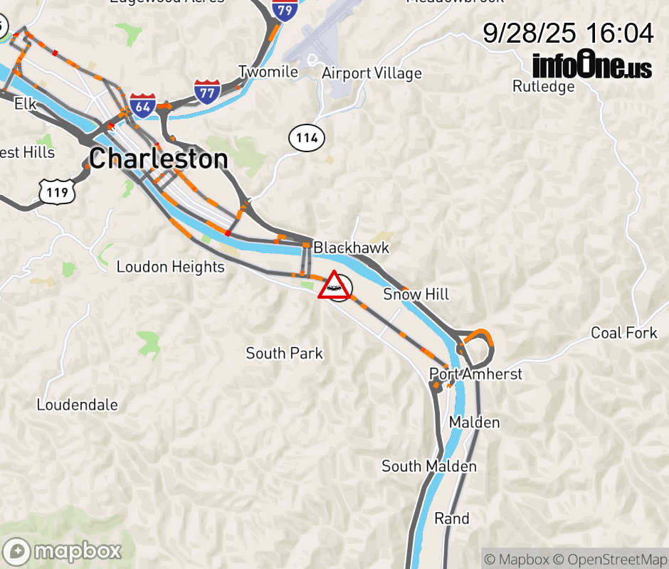 In Kanawha County there is a Vehicle Crash on WV-61S at Mile Marker 23.32. 40th Street.