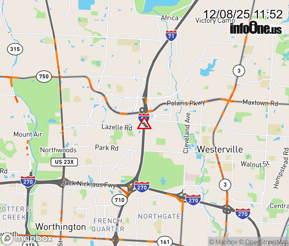 The left lane is blocked on I-71 North beyond Polaris Pkwy/Gemini Place, due to debris on roadway. ![]() |