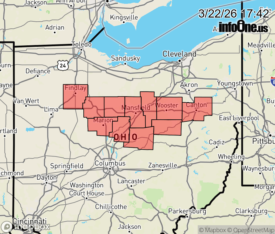 Canceled 3/22/26 8:29 PM Severe Thunderstorm Watch issued March 22 at 5:39PM EDT until March 23 at 12:00AM EDT by NWS Cleveland OH THE NATIONAL WEATHER SERVICE HAS ISSUED SEVERE THUNDERSTORM WATCH 73 IN EFFECT UNTIL MIDNIGHT EDT TONIGHT FOR THE FOLLOWING AREAS IN OHIO THIS WATCH INCLUDES 11 COUNTIES IN NORTH CENTRAL OHIO ASHLAND CRAWFORD KNOX MARION MORROW RICHLAND IN NORTHEAST OHIO HOLMES STARK WAYNE IN NORTHWEST OHIO HANCOCK WYANDOT THIS INCLUDES THE CITIES OF ALLIANCE, ASHLAND, BUCYRUS, CANTON, CARDINGTON, CAREY, CRESTLINE, FINDLAY, GALION, KILLBUCK, MANSFIELD, MARION, MASSILLON, MILLERSBURG, MOUNT GILEAD, MOUNT VERNON, ORRVILLE, RITTMAN, UPPER SANDUSKY, AND WOOSTER. ![]() |