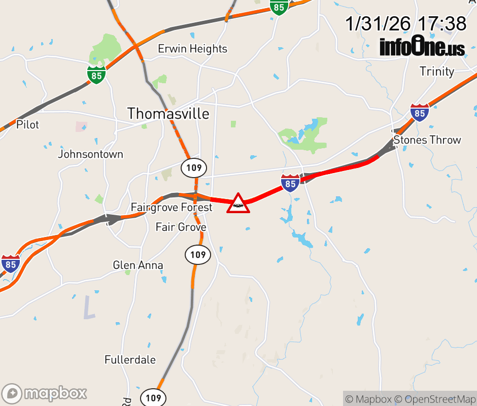 The road is closed at Exit 103 (NC 109) Motorists follow direction of on scene responders. Updated: Sat 1/31/26 5:38 PM EST ![]() Updated: Sat 1/31/26 5:38 PM EST |