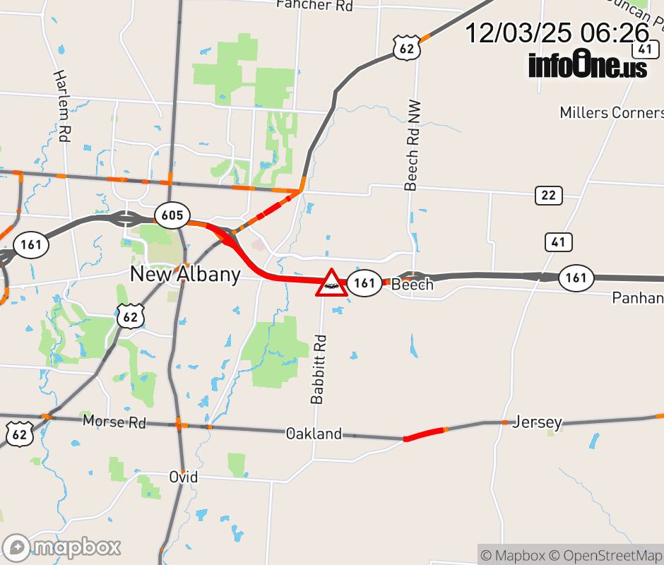 The right shoulder is blocked on SR-161 East beyond US-62, due to a crash. ![]() |