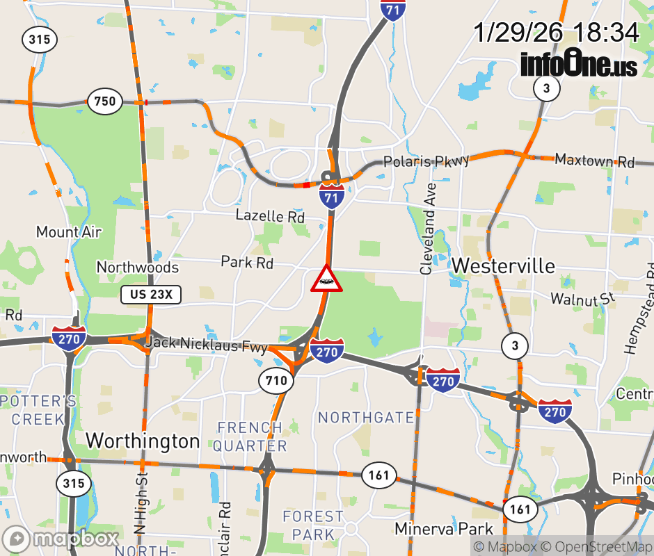 The right shoulder is blocked on I-71 South beyond Gemini Place To Polaris Pkwy, due to a crash. Updated: Thu 1/29/26 6:34 PM EST ![]() Updated: Thu 1/29/26 6:34 PM EST |
