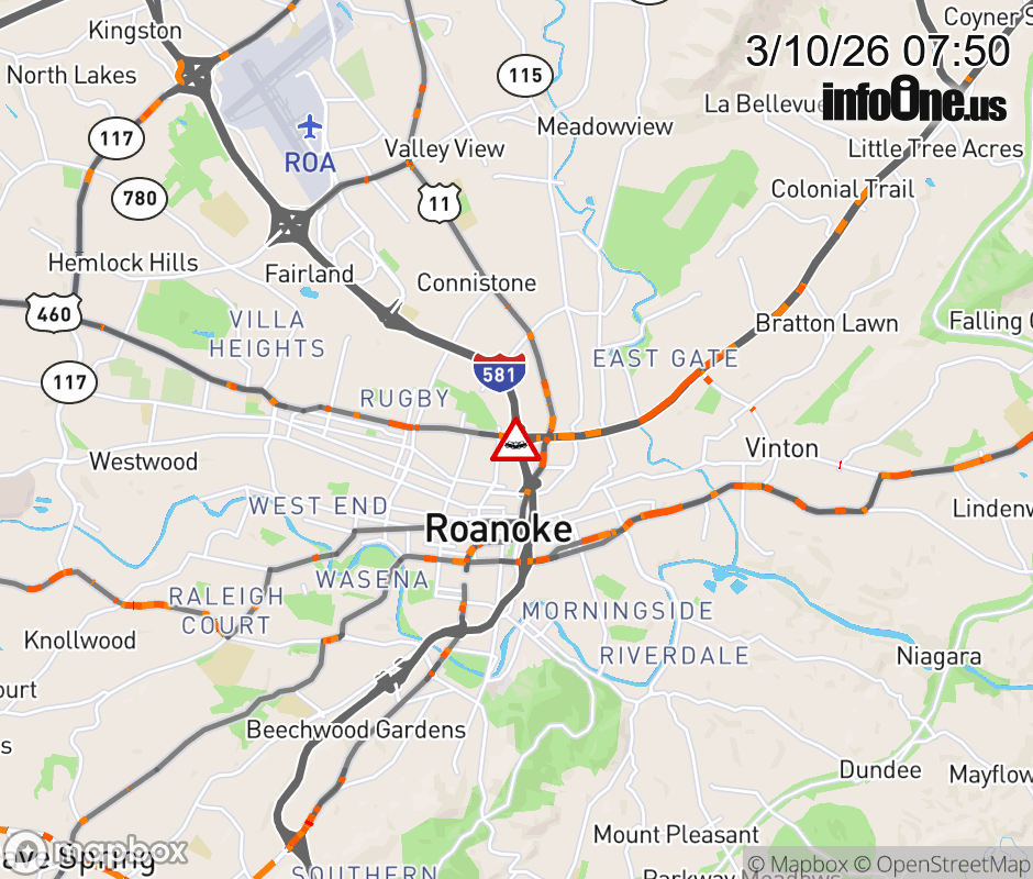 On I-581 at mile marker 1.1 in the City of Roanoke, motorists can expect delays due to a vehicle crash. The south right shoulder is closed. ![]() |