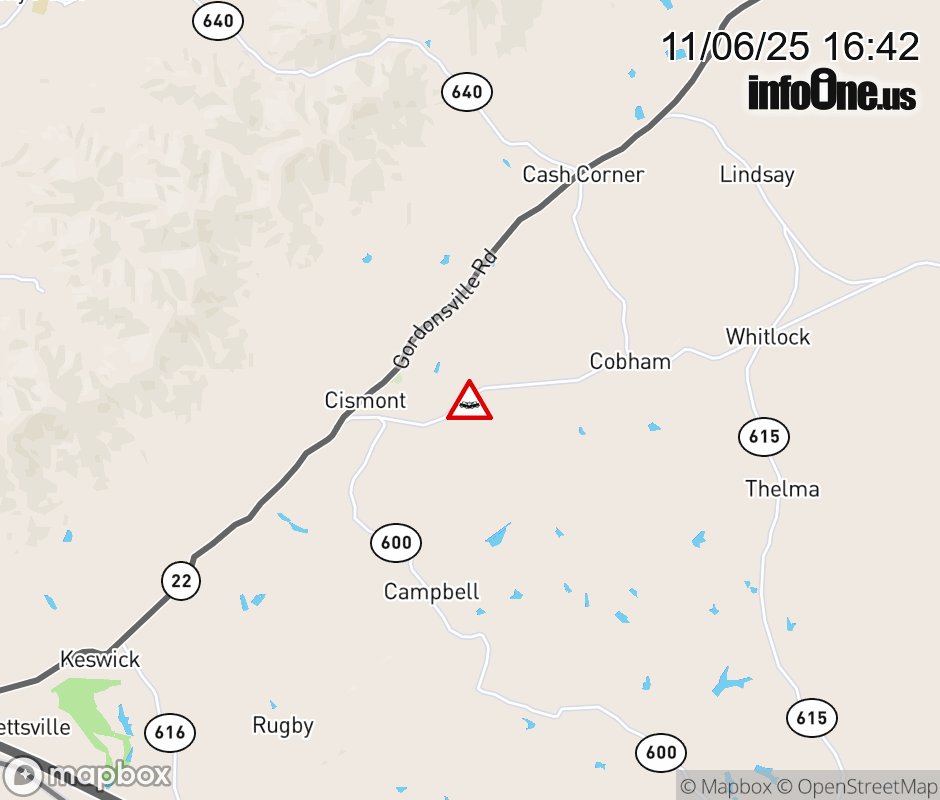 On VA-22 East in the County of Albemarle, in the vicinity of Zion Hill Rd; Rt. 740N/S (Albemarle County), motorists can expect delays due to a vehicle crash. Updated: Thu 11/6/25 4:42 PM EST ![]() Updated: Thu 11/6/25 4:42 PM EST |