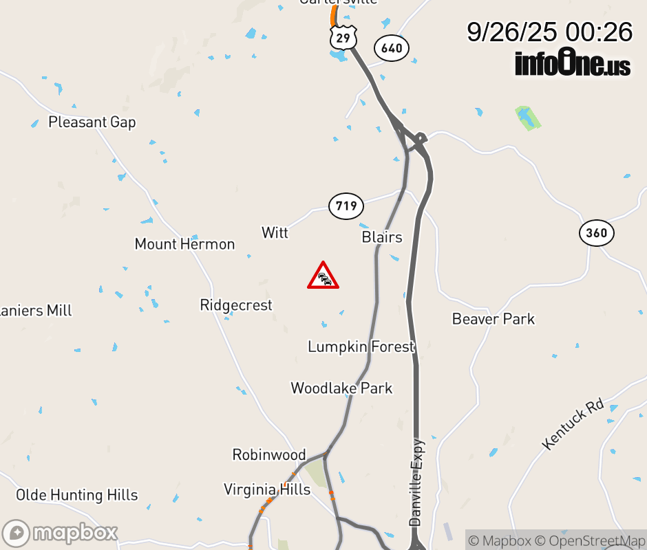 On Rt. 745 in the County of Pittsylvania, in the vicinity of Afton Rd; Rt. 727N/S (Pittsylvania County), motorists can expect delays due to weather. All north lanes are closed. All south lanes are closed. ![]() |