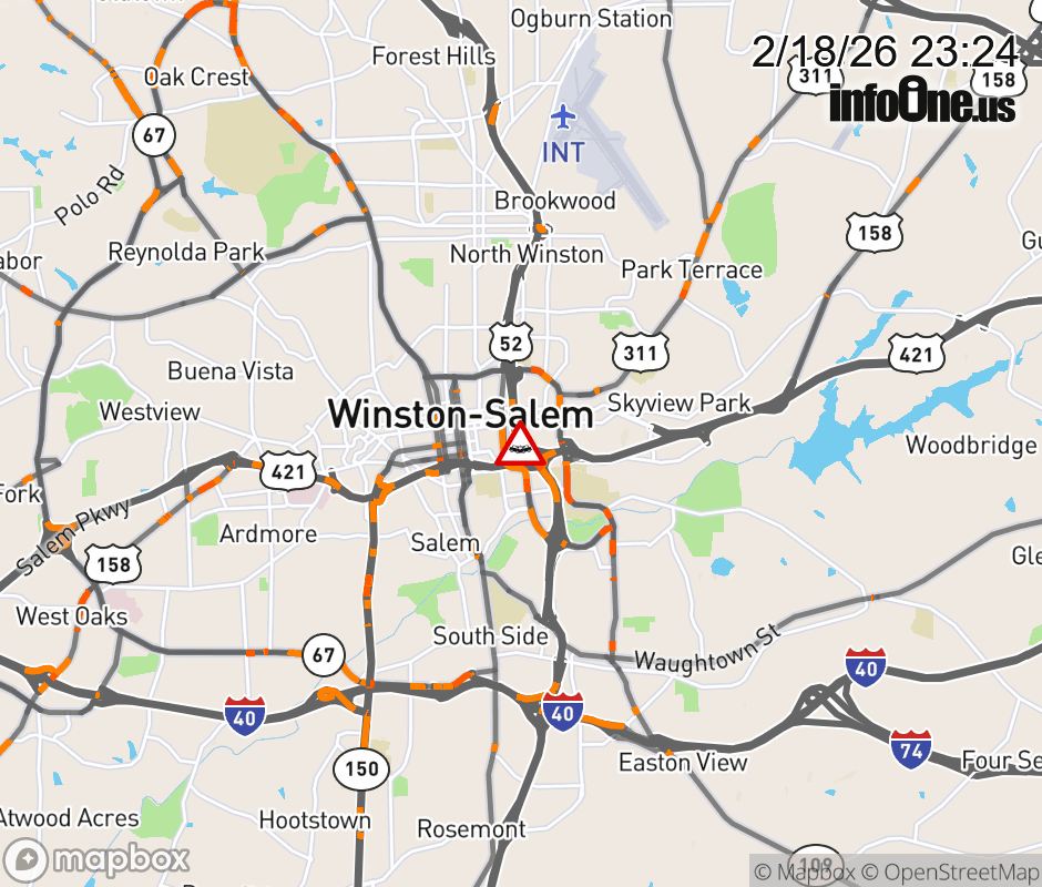 The left lane is closed near Exit 109 (US-421). ![]() |