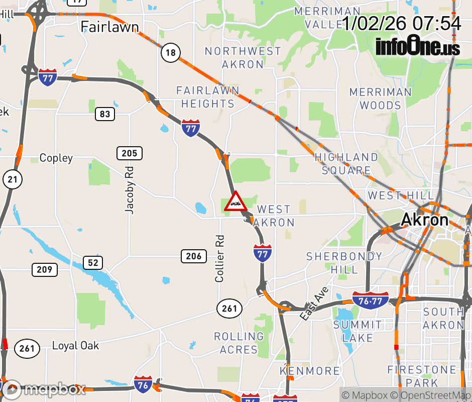 The right shoulder is blocked on I-77 South at SR-162/Copley Rd, due to a disabled vehicle. ![]() |