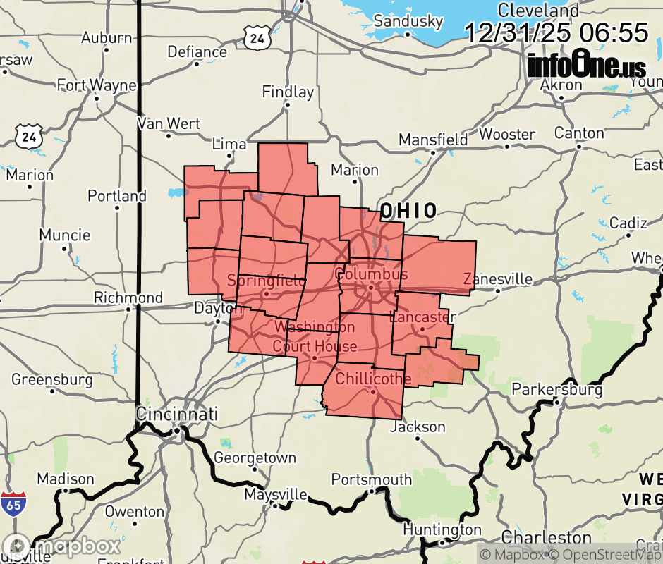 Canceled 12/31/25 9:57 AM Winter Weather Advisory issued December 31 at 6:53AM EST until December 31 at 11:00AM EST by NWS Wilmington OH * WHAT... A light glaze of ice due to freezing drizzle. * WHERE... Portions of central, south central, and west central Ohio. * WHEN... Until 11 AM EST this morning. * IMPACTS... Plan on slippery road conditions that may impact this morning's commute. ![]() |