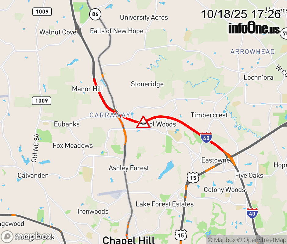 All lanes are closed near Exit 266 (NC-86). ![]() |