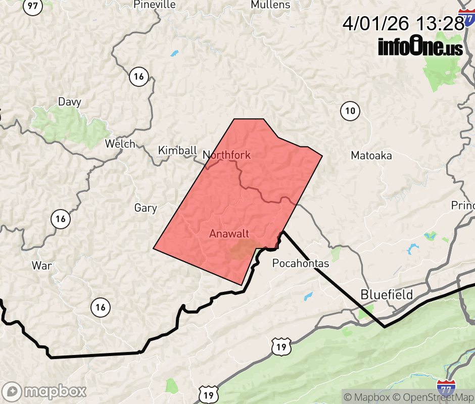 Canceled 4/1/26 1:45 PM Special Weather Statement issued April 1 at 1:27PM EDT by NWS Charleston WV At 126 PM EDT, Doppler radar was tracking a strong thunderstorm near Northfork, or 9 miles southeast of Welch, moving east at 20 mph. HAZARD...Wind gusts up to 40 mph and half inch hail. SOURCE...Radar indicated. IMPACT...Gusty winds could knock down tree limbs and blow around unsecured objects. Minor hail damage to vegetation is possible. Locations impacted include... Gary, Northfork, Keystone, Anawalt, Maybeury, and Jenkinjones. ![]() |
