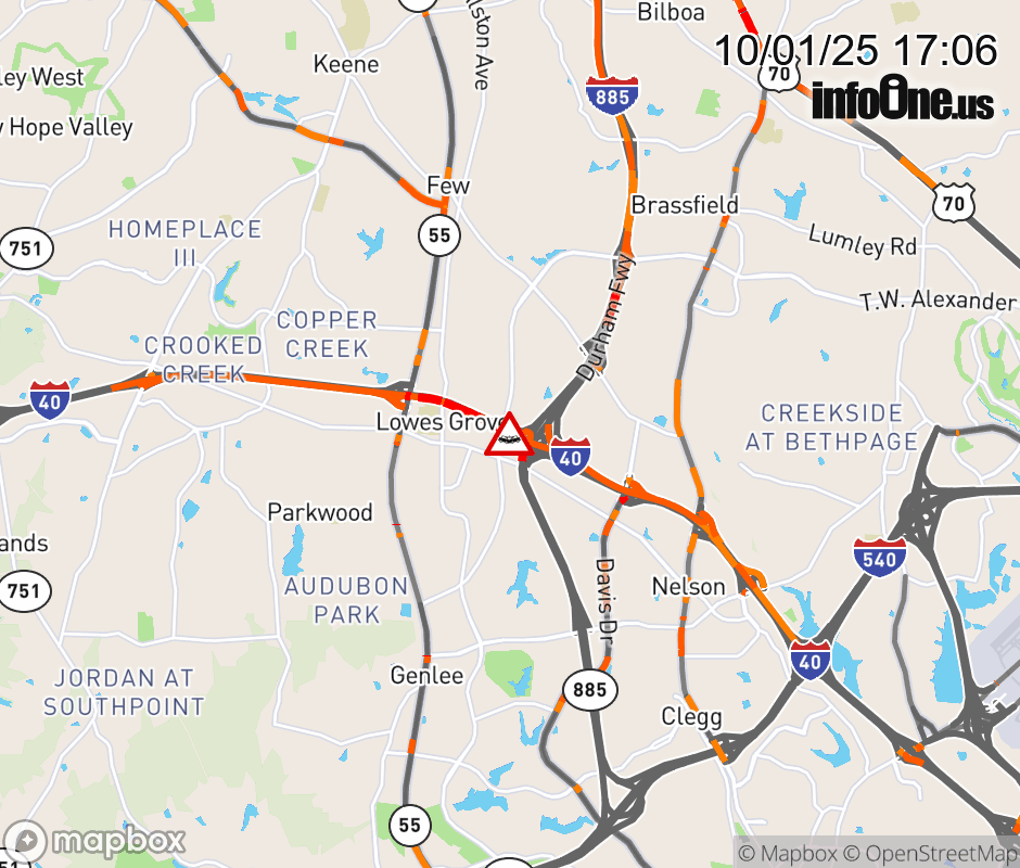 The left lane is closed near Exit 279 (I-885). ![]() |