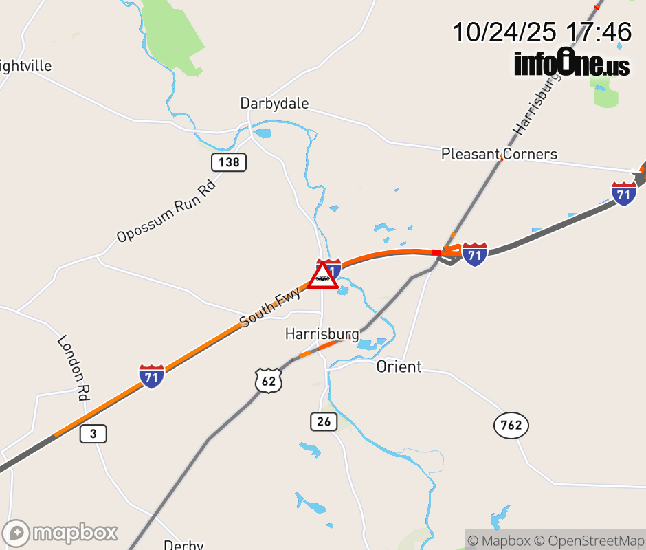Expect lane closures on I-71 South beyond US-62/SR-3, due to a crash. ![]() |