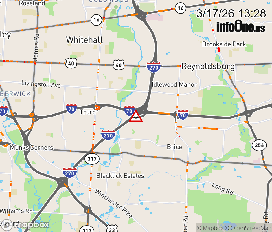 Expect lane closures on Ramp I-270 North to I-70 East (Eastside), due to a crash. ![]() |