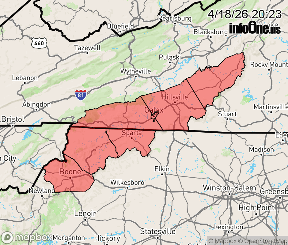 Wind Advisory issued April 18 at 8:22PM EDT until April 19 at 4:00PM EDT by NWS Blacksburg VA * WHAT... Northwest winds 20 to 30 mph with gusts up to 50 mph expected, especially along the higher ridges. * WHERE... In North Carolina, Alleghany NC, Ashe, and Watauga Counties. In Virginia, Carroll, Floyd, and Grayson Counties. * WHEN... From 6 AM to 4 PM EDT Sunday. * IMPACTS... Gusty winds will blow around unsecured objects. Tree limbs could be blown down and a few power outages may result. ![]() |