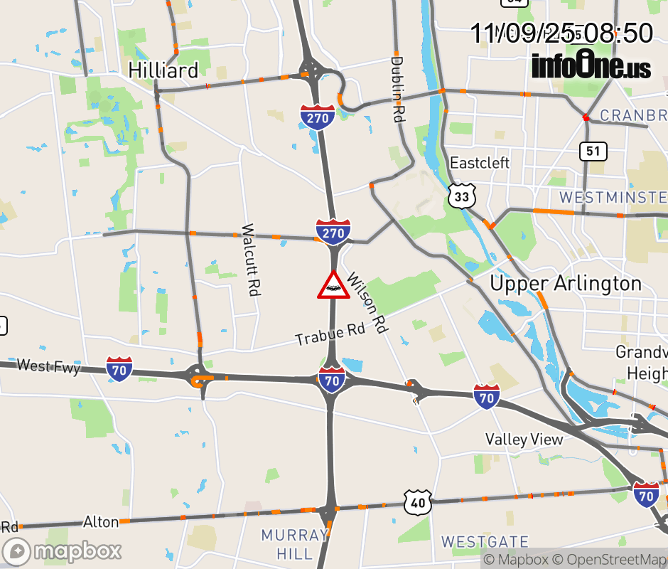 Shoulders are blocked on I-270 North beyond I-70, due to a crash. Updated: Sun 11/9/25 8:50 AM EST ![]() Updated: Sun 11/9/25 8:50 AM EST |