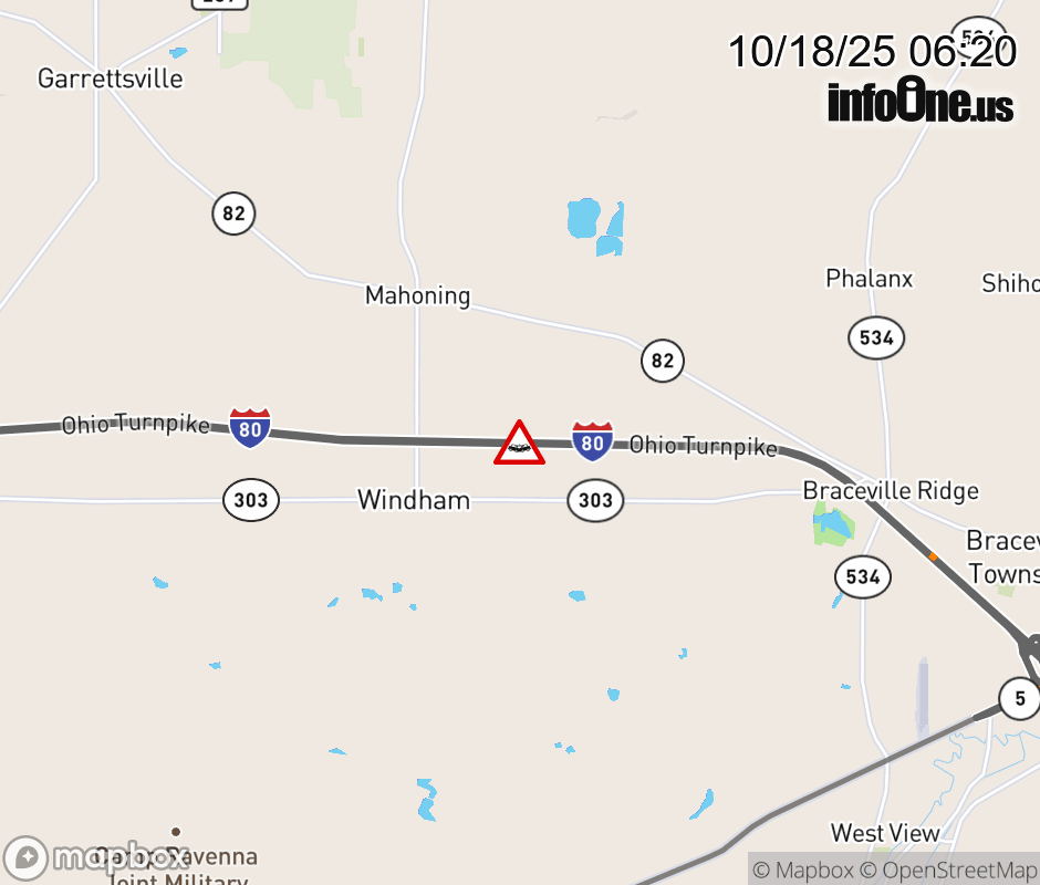 Expect lane closures on I-80 West (Ohio Turnpike) beyond SR-5, due to a crash. ![]() |