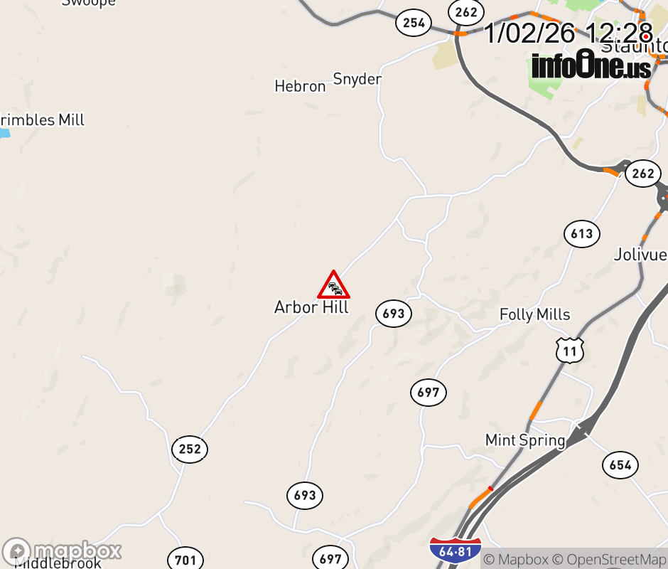 On Rt. 709 in the County of Augusta, in the vicinity of Middlebrook Rd; VA-252N/S, motorists can expect delays due to a brush fire. All east lanes are closed. All west lanes are closed. ![]() |