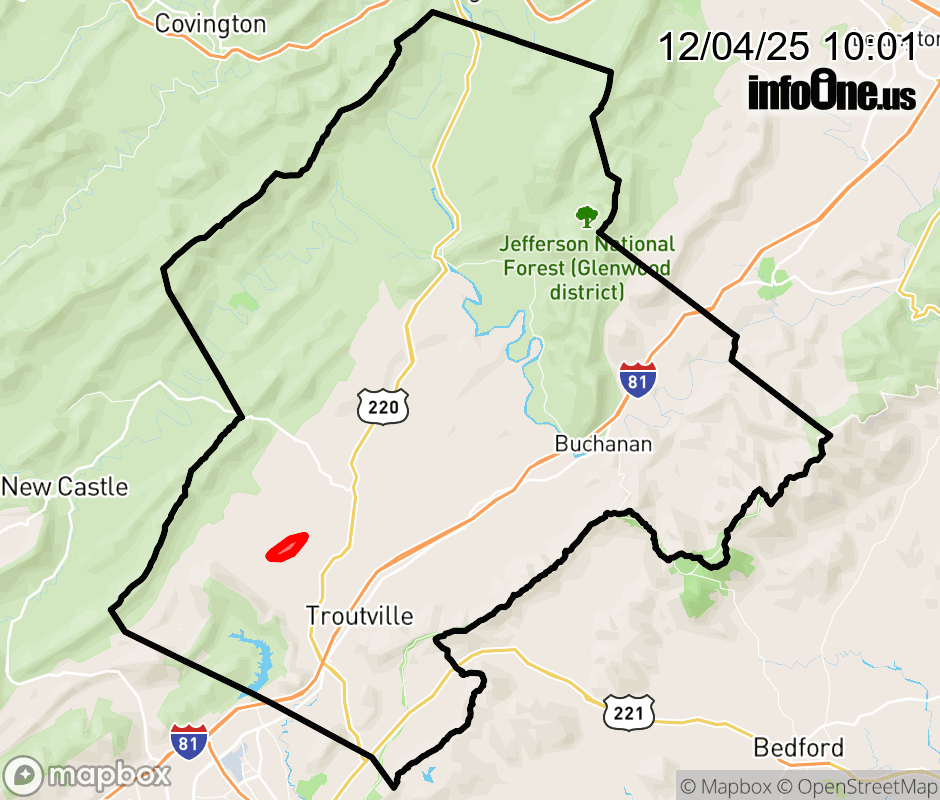 Canceled 12/4/25 12:10 PM Botetourt County has 1 power outage affecting 66 customers. Appalachian Power 66 without power Troutville: Customers affected: 66 (2%) Estimated repair: Thu 12:00 PM Updated: Thu 12/4/25 10:01 AM EST ![]() Updated: Thu 12/4/25 10:01 AM EST |