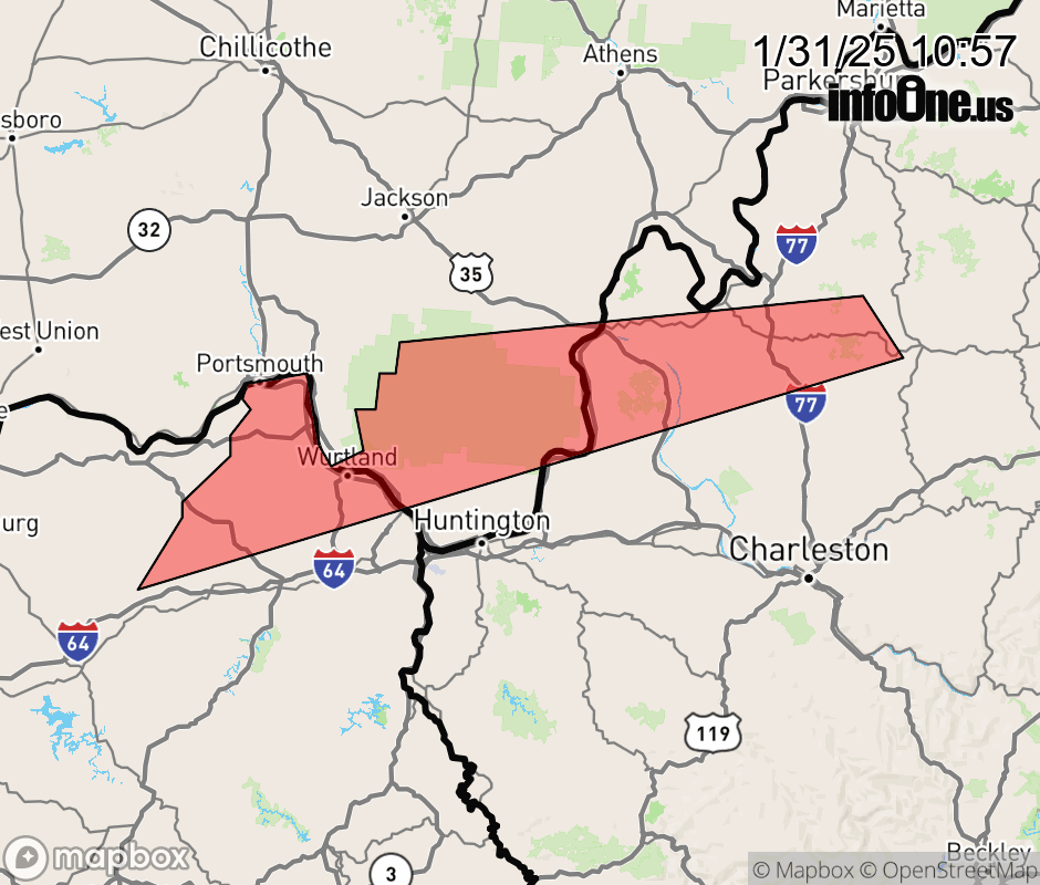 Canceled 1/31/25 1:55 PM Flood Warning issued January 31 at 10:55AM EST until January 31 at 2:00PM EST by NWS Charleston WV * WHAT... Urban area and small stream flooding caused by excessive rainfall continues. * WHERE... Portions of northeast Kentucky, including the following counties, Carter and Greenup, southeast Ohio, including the following counties, Gallia and Lawrence, and West Virginia, including the following counties, Jackson, Mason and Roane. * WHEN... Until 200 PM EST. * IMPACTS... Flooding of rivers, creeks, streams, and other low-lying and flood-prone locations is imminent or occurring. Streams continue to rise due to excess runoff from earlier rainfall. * ADDITIONAL DETAILS... - At 1055 AM EST, Doppler radar indicated an area of very heavy rainfall across the warned area. Between 0.5 and 1 inch of rain has fallen. - Some locations that will experience flooding include... Ashland, Ironton, Point Pleasant, Gallipolis, Ripley, Coal Grove, Lake Vesuvius, Carter Caves State Park, Greenup, Greenbo Lake, Oldtown, Load, Letitia, Gesling, Carter, Flatwoods, Russell, Vernon, Waterloo and Raceland. - http://www.weather.gov/safety/flood ![]() |