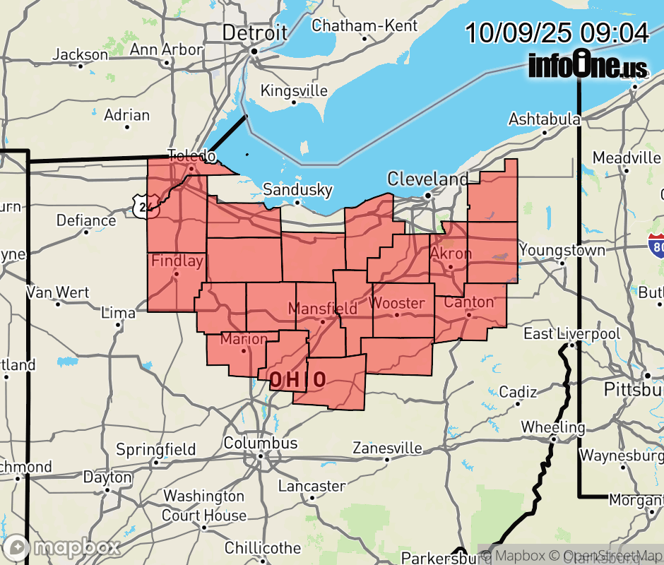 Canceled 10/9/25 12:08 PM Frost Advisory issued October 9 at 9:03AM EDT until October 10 at 9:00AM EDT by NWS Cleveland OH * WHAT... Temperatures as low as 32 will result in frost formation. * WHERE... Portions of north central, northeast, and northwest Ohio. * WHEN... From 1 AM to 9 AM EDT Friday. * IMPACTS... Frost could harm sensitive outdoor vegetation. Sensitive outdoor plants may be killed if left uncovered. ![]() |