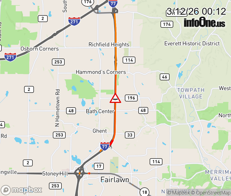 The left lane is closed on I-77 North beyond Ghent Rd, due to a crash. Updated: Thu 3/12/26 12:12 AM EDT ![]() Updated: Thu 3/12/26 12:12 AM EDT |