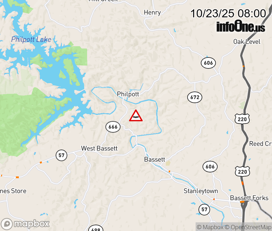 On Rt. 722 North in the County of Henry, in the vicinity of Philpott Dr; Rt. 674E/W (Henry County), motorists can expect delays due to a vehicle crash. Lane closures exist. ![]() |