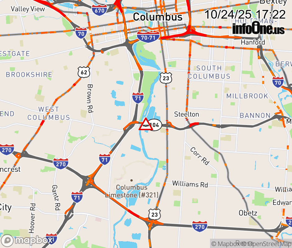 The right shoulder is blocked on SR-104 West beyond Haul Rd, due to a crash. Updated: Fri 10/24/25 5:22 PM EDT ![]() |