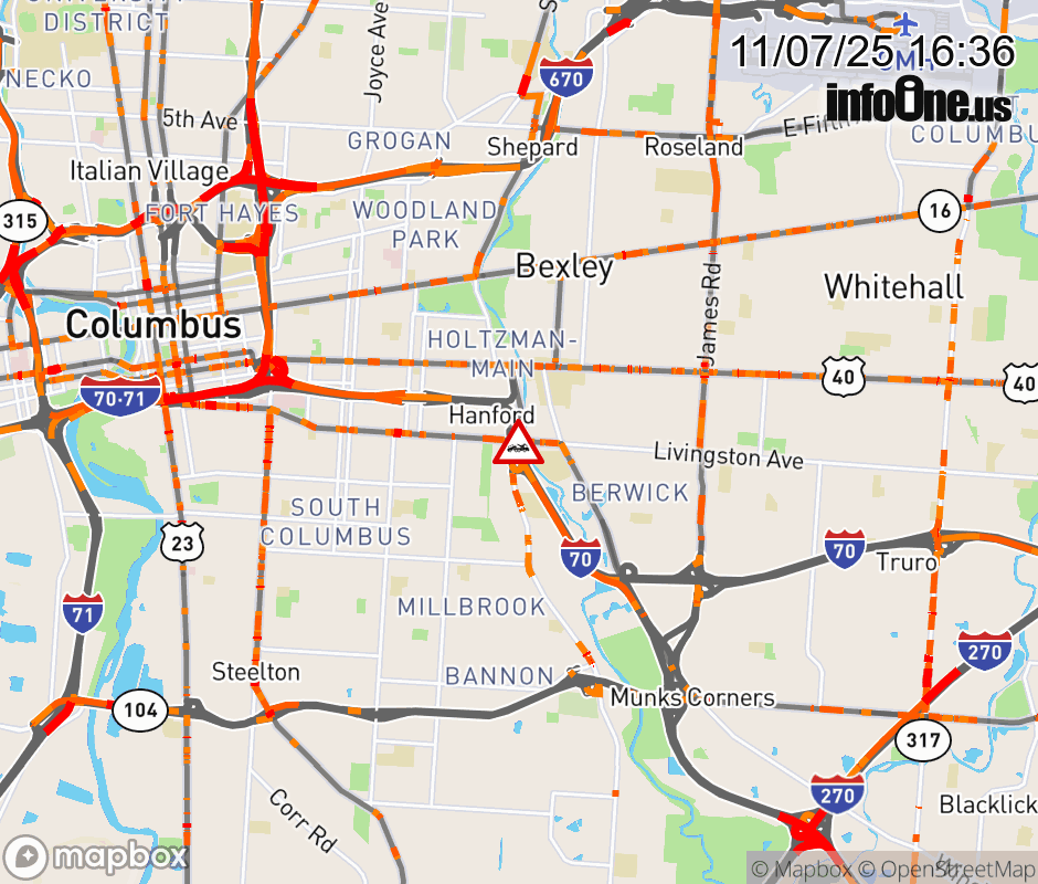 The right shoulder is blocked on I-70 East at Main St, due to a disabled vehicle. Updated: Fri 11/7/25 4:36 PM EST ![]() |