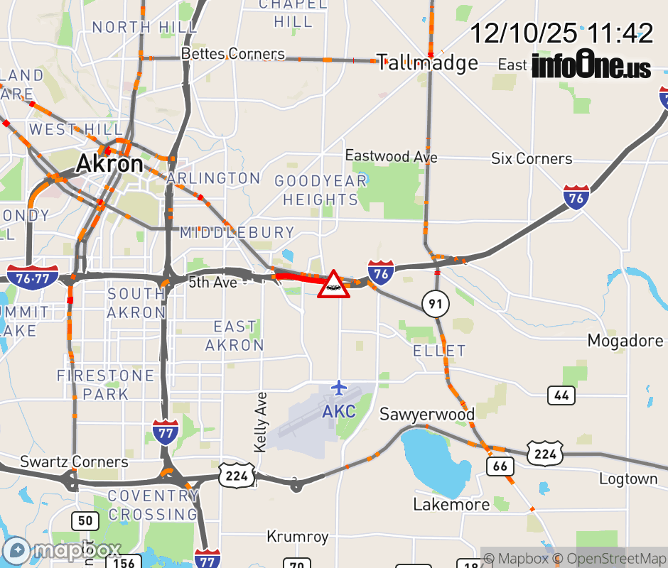 The left lane is blocked on I-76 East beyond Brittain Rd, due to a crash. Updated: Wed 12/10/25 11:42 AM EST ![]() Updated: Wed 12/10/25 11:42 AM EST |