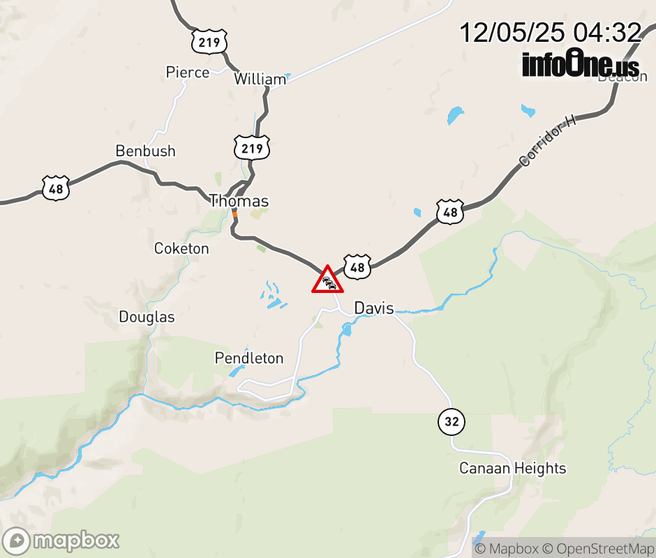 Road Closure on WV-32 (Appalachian Hwy) & US-48 Synergy Hwy). The southbound road is closed. The northbound road is closed. Comments:Due to vehicle crash & lines down. Updated: Fri 12/5/25 4:32 AM EST ![]() Updated: Fri 12/5/25 4:32 AM EST |