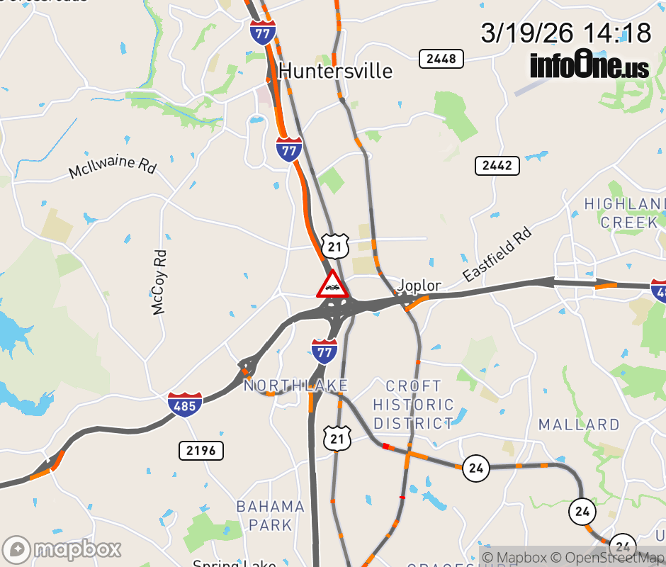 Disabled Vehicle on I-77 South Bound near exit 19, I-485 Interchange. The right two lanes are blocked. ![]() |