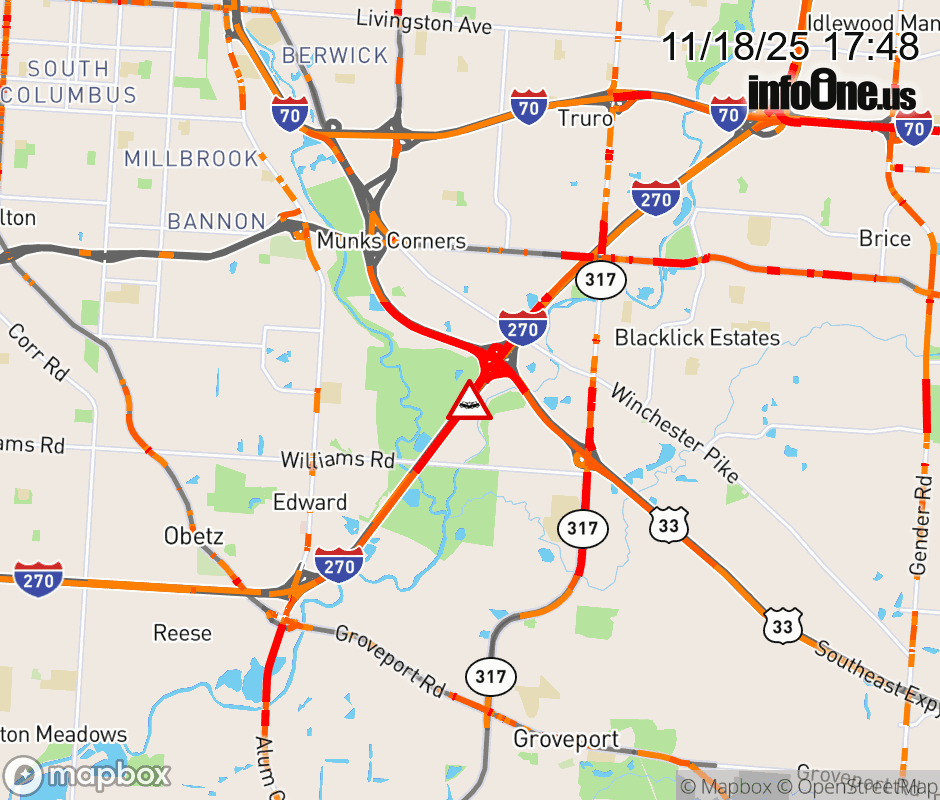 The left shoulder is blocked on I-270 North at US-33, due to a crash. ![]() |