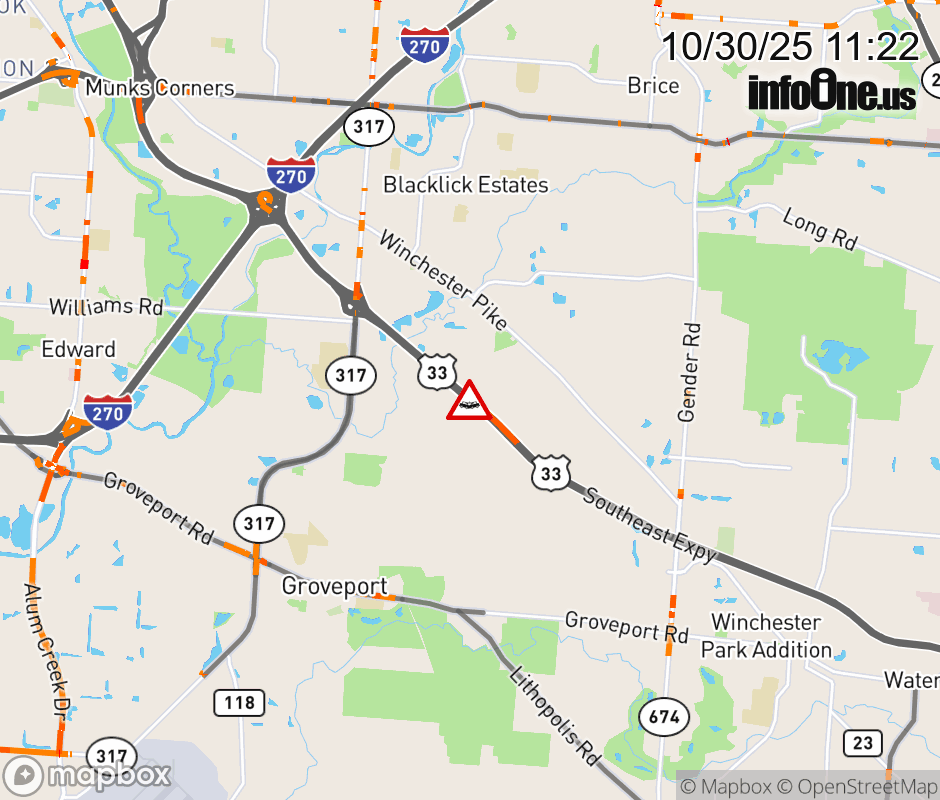 Expect lane closures on US-33 West beyond Bixby Rd, due to a crash. ![]() |
