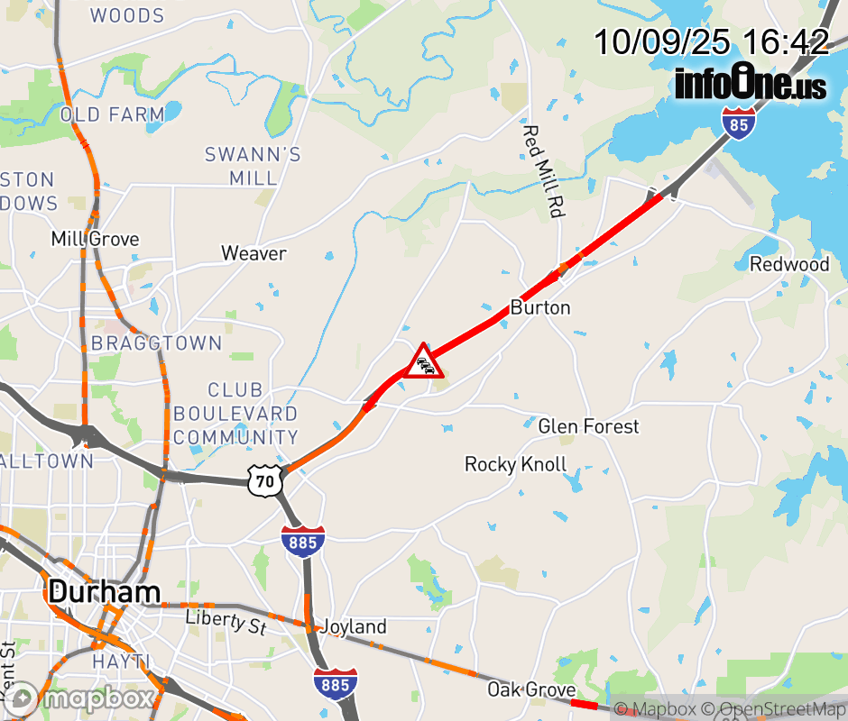 Canceled 10/9/25 4:56 PM Location: I-85N at MM 180, NC Reported Incident.