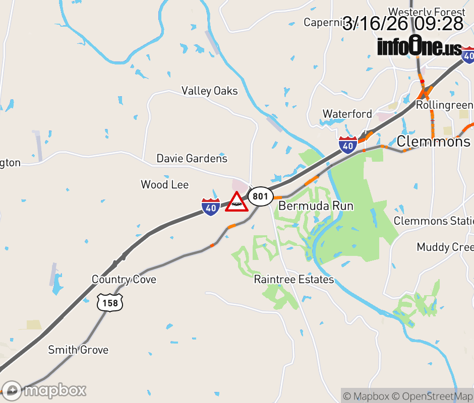 The right lane is closed before Exit 180 (NC 801). Updated: Mon 3/16/26 9:28 AM EDT ![]() Updated: Mon 3/16/26 9:28 AM EDT |