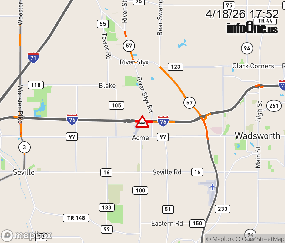 Canceled 4/18/26 7:16 PM Location: I-76/US-224 East at MM 6.1, OH Accident.