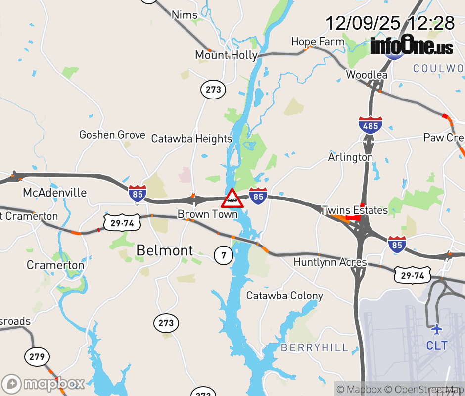 The left lane is closed after Exit 27 (NC 273)> ![]() |