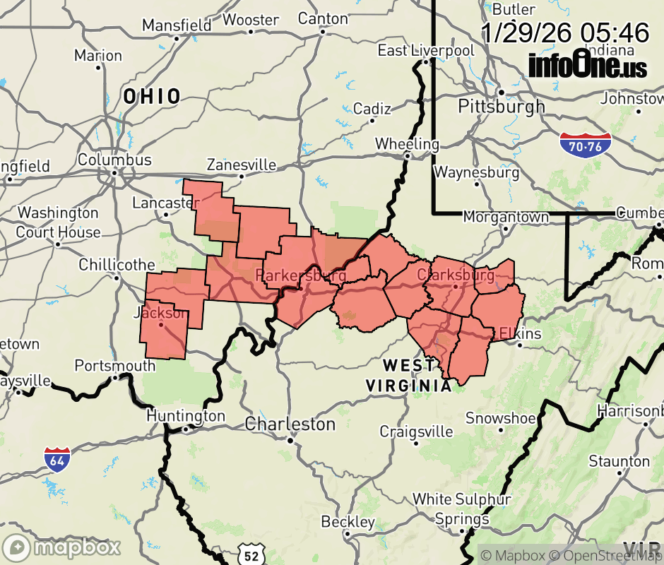 Canceled 1/29/26 10:47 AM Cold Weather Advisory issued January 29 at 5:44AM EST until January 29 at 11:00AM EST by NWS Charleston WV * WHAT... Very cold wind chills as low as 9 below. * WHERE... Portions of southeast Ohio and central and northern West Virginia. * WHEN... Until 11 AM EST this morning. * IMPACTS... The cold wind chills as low as 10 below zero could result in hypothermia if precautions are not taken. ![]() |