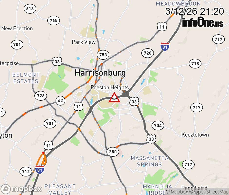 On I-81 at mile marker 247 in the County of Rockingham, motorists can expect delays due to a tractor trailer crash. The south right shoulder is closed. Updated: Thu 3/12/26 9:20 PM EDT ![]() Updated: Thu 3/12/26 9:20 PM EDT |