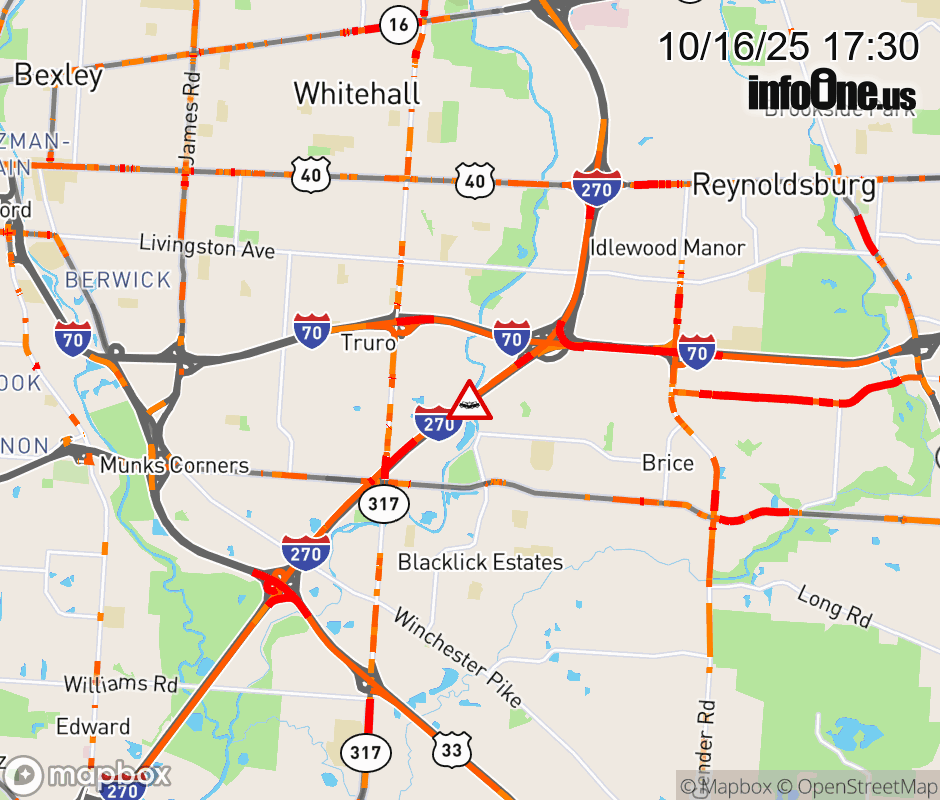 The left lane is blocked on I-270 South beyond I-70, due to a crash. Updated: Thu 10/16/25 5:30 PM EDT ![]() Updated: Thu 10/16/25 5:30 PM EDT |