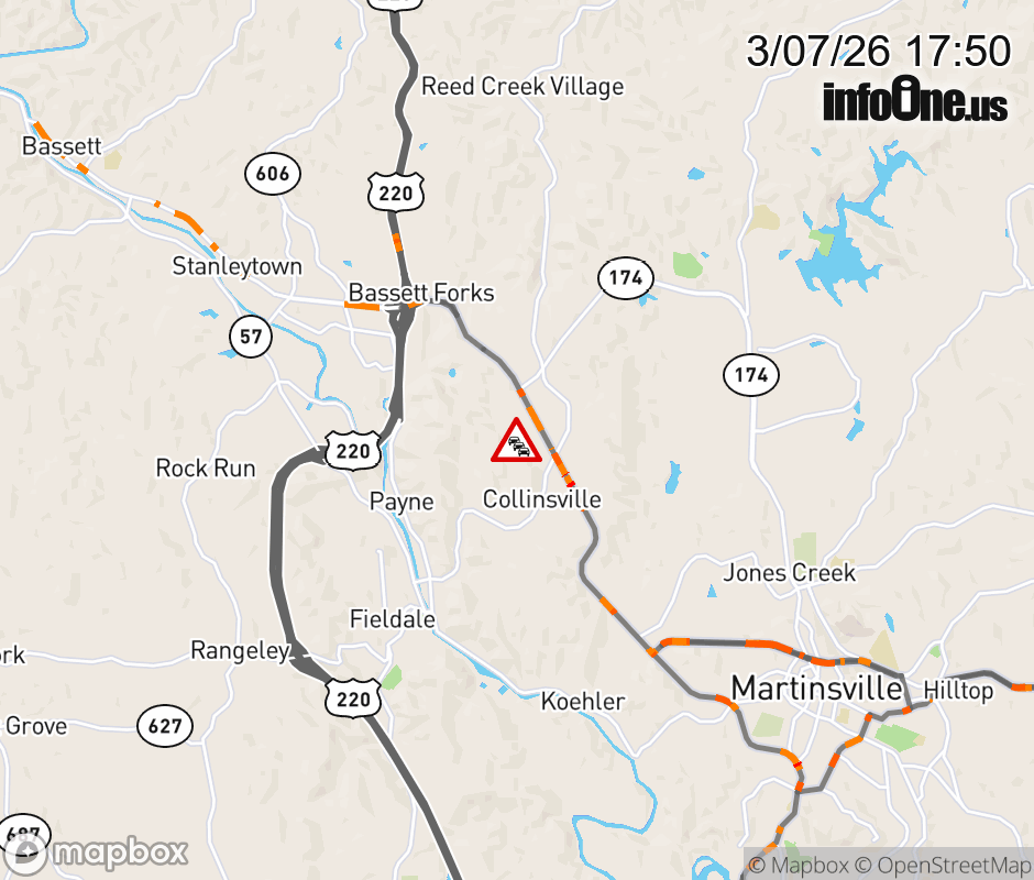 On Rt. 1120 in the County of Henry, in the vicinity of Patsy Ave; Rt. 1124E/W (Henry County), motorists can expect delays due to an incident. All north lanes are closed. All south lanes are closed. Updated: Sat 3/7/26 5:50 PM EST ![]() Updated: Sat 3/7/26 5:50 PM EST |