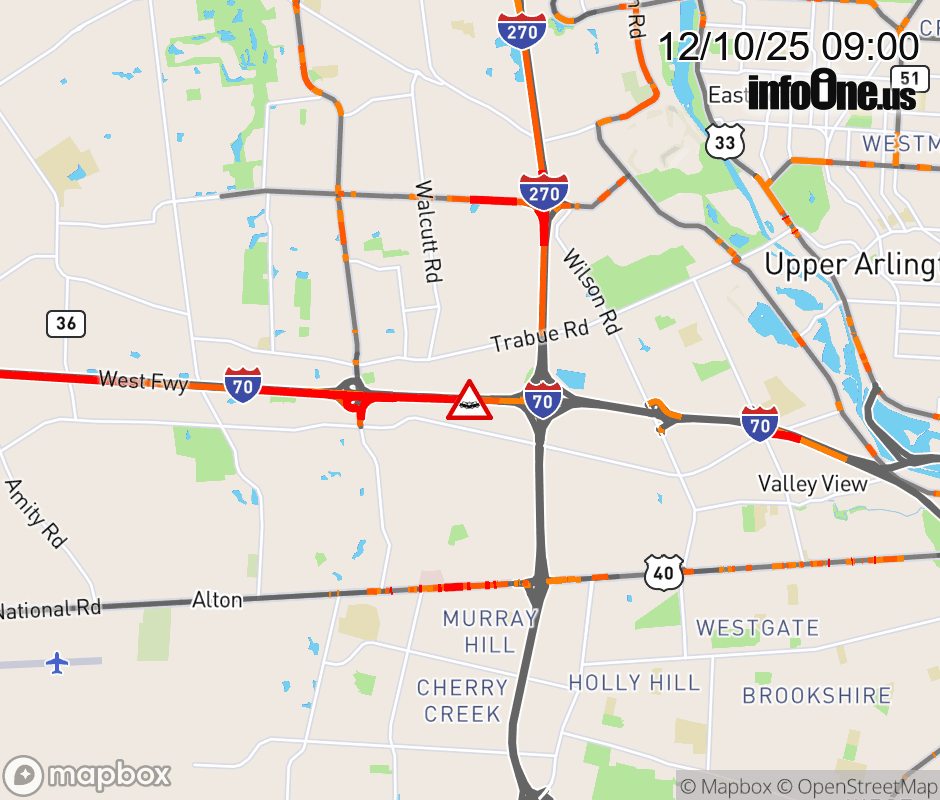 The left shoulder is blocked on I-70 East beyond Hilliard - Rome Rd, due to a crash. Updated: Wed 12/10/25 9:00 AM EST ![]() Updated: Wed 12/10/25 9:00 AM EST |