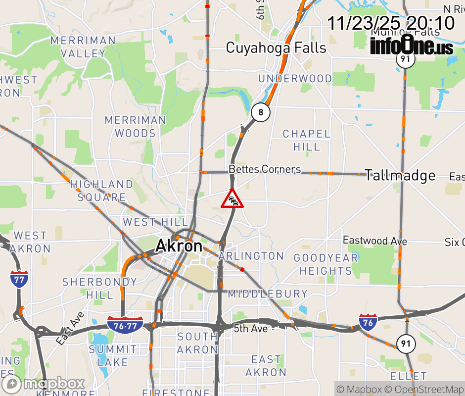 The left lane is blocked on SR-8 South/SR-59 West beyond SR-261/Tallmadge Ave, due to repairs/maintenance. ![]() |